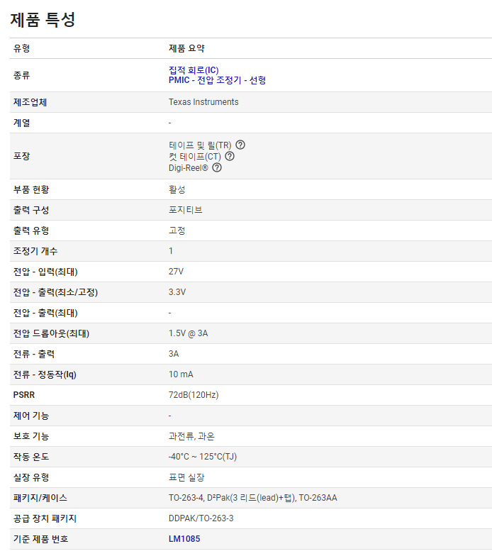 이미지 확대보기 LM1085ISX-3.3/NOPB TO-263 TI [OPEN-NA05-038]