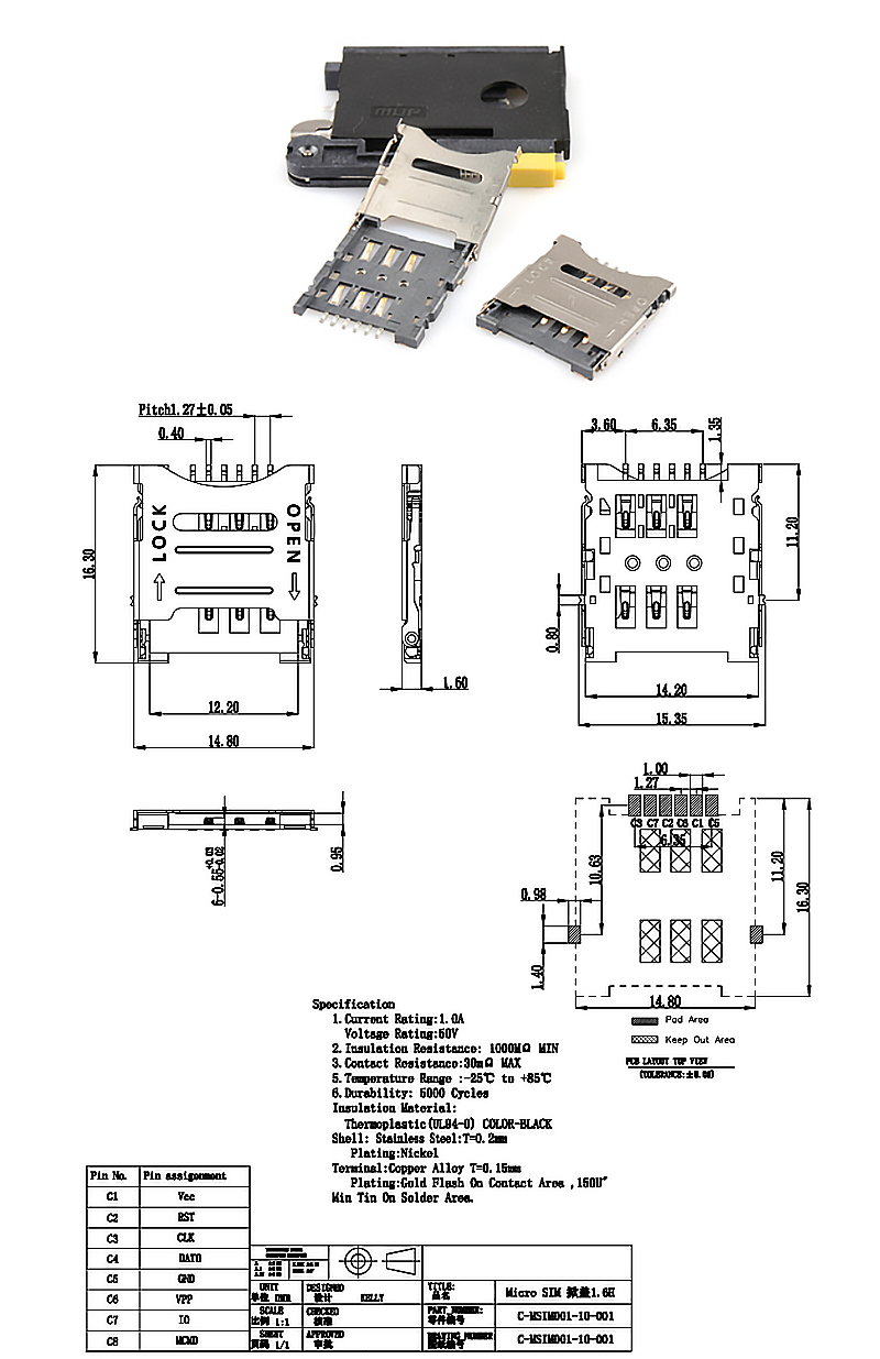 • 마이크로 휴대폰 SIM 카드 소켓 플립형 6P [OPEN-CO006-006]