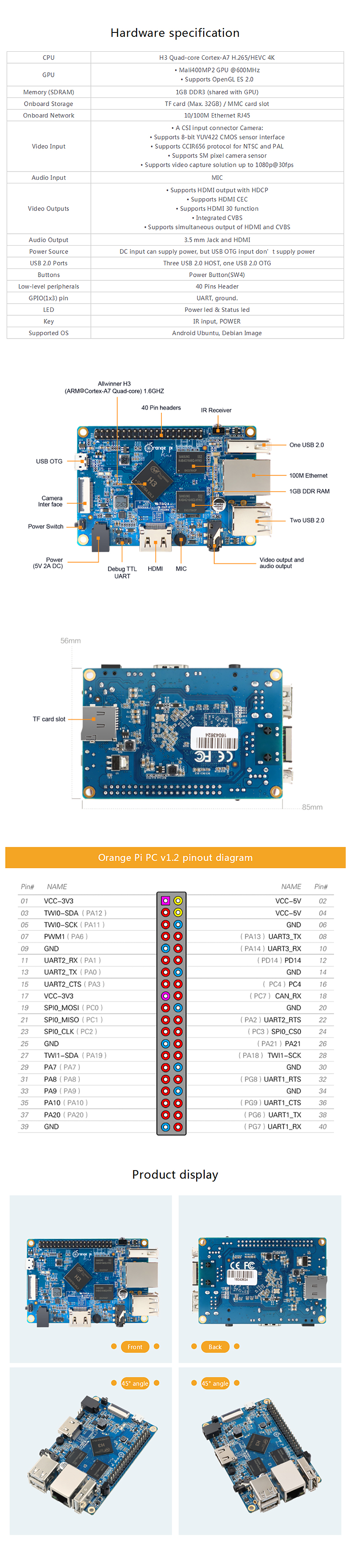 상품코드 및 모델명 :오렌지파이 OrangePi PC 프로그램 개발보드 H3 1GB 컴퓨터 개발보드