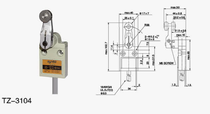 이미지 확대보기 XINGBO 방수 소형 prewired 롤러 레버 리미트 스위치 XTZ-3104 [ZSG18-61]