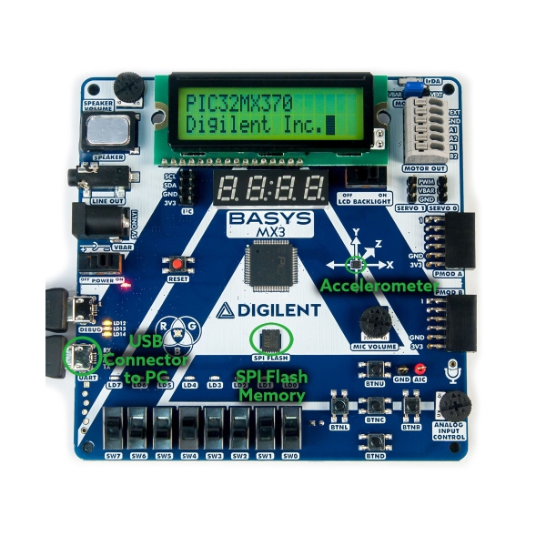 Accompanied by free and open-source coursework, including 7 in-depth teaching units and 15 complete labs, the Basys MX3 is also a versatile MCU trainer board ideal for teaching introductory embedded systems courses. It covers topics from toggling LED's to motor control to digital signal processing. The coursework is designed for sophomore/junior level embedded systems courses.