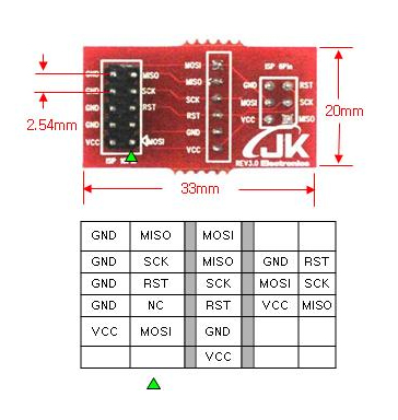 AVR용 ISP장비의 ISP 포트가 10핀이고 타겟은 6핀인 경우 변환 할 수 있는 ISP 변환 보드 입니다.