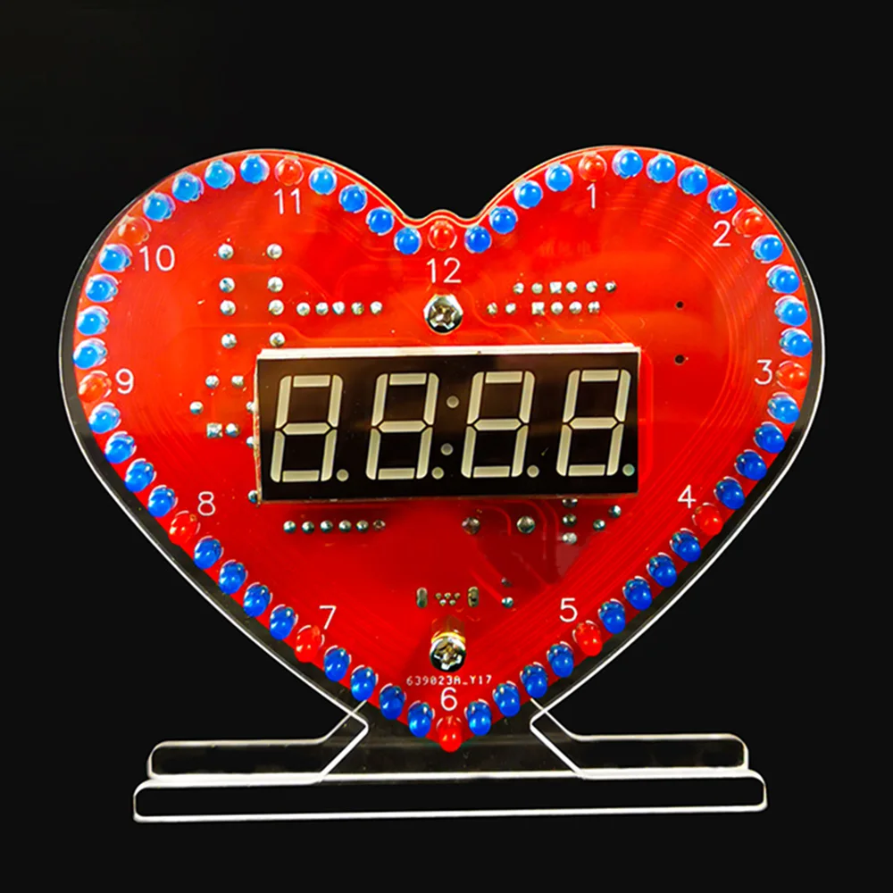 • DIY 키트 전자 시계 하트 모양 플래시 LED 러브 크리에이티브 선물 DIY 납땜 키트 초보자용 시간 온도 표시 [DIY-84]