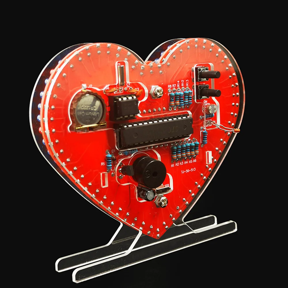 DIY 키트 전자 시계 하트 모양 플래시 LED 러브 크리에이티브 선물 DIY 납땜 키트 초보자용 시간 온도 표시 [DIY-84]